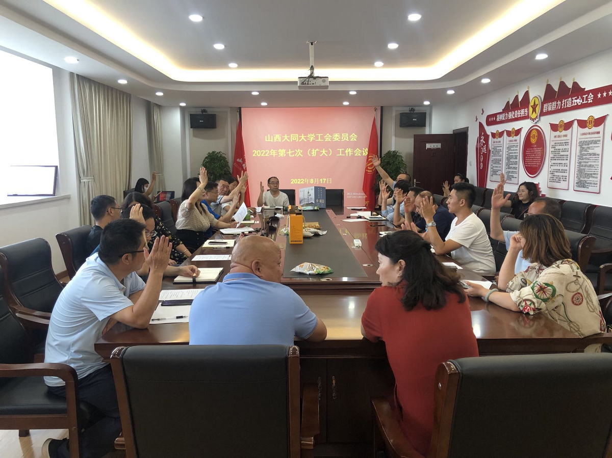隨后,集體討論了2022年“中秋節”慰問教職工事宜,經與會人員一致表決通過在全國貧困地區農副產品網上銷售平臺(即832平臺)購買米、面、油等慰問品進行發放。之后,集體討論教職工購買云州區黃花事宜、舉辦第三屆青年教師教學發展與創新人才培養論壇、舉辦“名醫專家進社區、健康服務送千家”大型義診活動、山西省總工會赴山西大同大學開展“關愛職工清涼一夏”慰問品發放活動和各基層工會推薦申報山西大同大學第三批教職工創新工作室事宜。