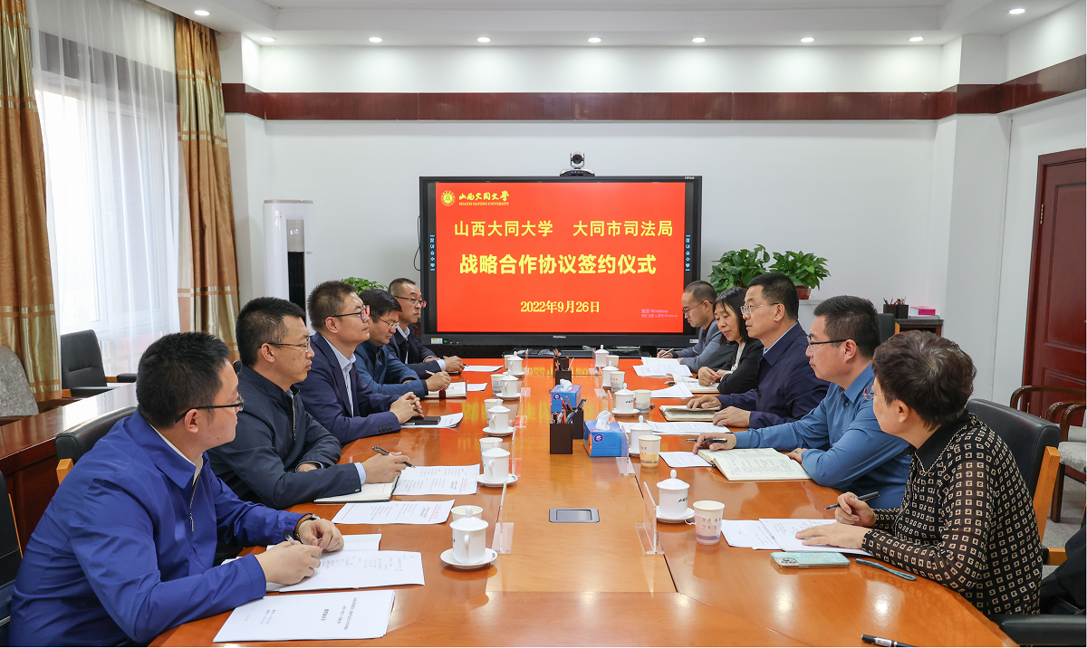 ?9月26日,我校與大同市司法局簽署戰略合作協議。校黨委常委、副校長史水鴻出席儀式并講話。大同市委依法治市辦副主任、市司法局黨組書記、局長邵晉棟,司法局副局長張晨光、四級調研員蘭日祥、辦公室主任李曉剛、法治調研科科長劉啟明,法學院黨委書記羅青、院長楊興香,學校辦公室副主任、法學院副院長張有林等參加簽約儀式。發展規劃合作部部長張健主持儀式。