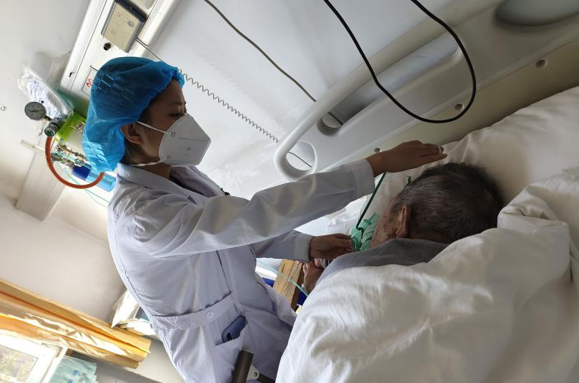 護士長趙秀榮在人員短缺,危重患者較多的情況下,以身作則、身兼數職,除做好臨床護理工作外同時承擔著科室患者核酸采集、為患者訂餐取餐發餐、幫助年老無陪護患者打水熱飯、病區衛生清潔等多項工作,用愛心、耐心、細心、責任心溫暖著每一位患者。