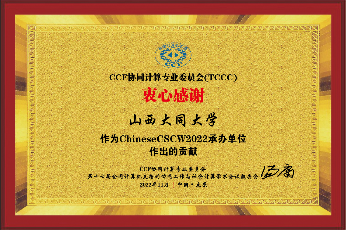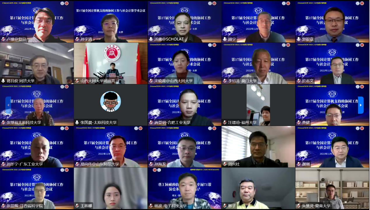 11月26日,第17屆全國計算機支持的協同工作與社會計算學術會議(ChineseCSCW2022)第一次在線上召開。本屆會議由中國計算機學會(CCF)主辦,山西大同大學與協同計算專業委員會(CCFTCCC)、太原科技大學聯合承辦。會議邀請了中國工程院院士蔣昌俊、中國計算機學會協同計算專委會主任湯庸等諸多高校和研究機構的著名學者、業界領先企業的相關專家作特邀報告,共同探討CSCW領域學界和業界的發展趨勢和熱點問題。我校姚麗英校長作為大會主席出席并致辭。