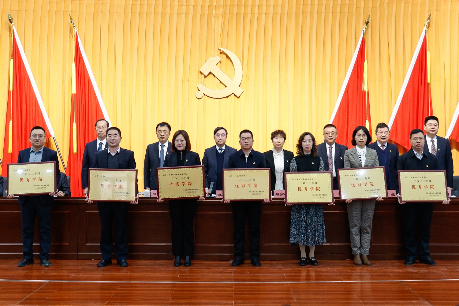 校領導為受表彰的先進集體頒發獎牌。