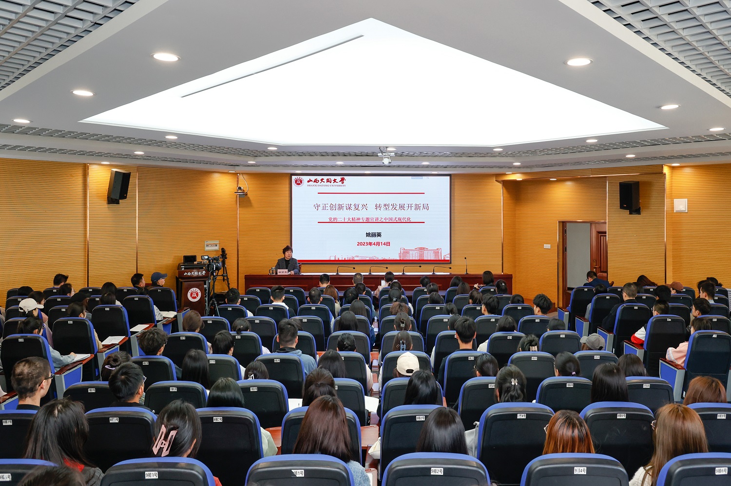 姚麗英的專題宣講,在師生中引發(fā)熱烈反響。教育科學(xué)與技術(shù)學(xué)院黨委副書記(主持黨委工作)劉金泉表示,姚校長(zhǎng)對(duì)國(guó)家“五位一體”總體布局、“四個(gè)全面”戰(zhàn)略布局,山西省、大同市“雙城記”的整體布局進(jìn)行了深層次的解讀,深入淺出卻又寓意深遠(yuǎn),讓青年師生加深了對(duì)黨的二十大精神的理解,激勵(lì)廣大青年學(xué)生做有理想、有抱負(fù)的新時(shí)代好青年。教育科學(xué)與技術(shù)學(xué)院2022級(jí)小學(xué)教育一班呂東潔表示,姚校長(zhǎng)為我們講述了中國(guó)式現(xiàn)代化的深刻內(nèi)涵,同時(shí)結(jié)合同大優(yōu)秀學(xué)子的事跡展示中國(guó)式現(xiàn)代化的“同大面貌”,以榜樣的力量引領(lǐng)我們做有理想、有擔(dān)當(dāng)、敢作為的新時(shí)代青年。建筑與測(cè)繪工程學(xué)院2022級(jí)測(cè)繪升二班閆皓琦表示,姚校長(zhǎng)將黨的二十大精神與山西發(fā)展實(shí)際結(jié)合起來(lái),多方面多角度講述了中國(guó)式現(xiàn)代化的本質(zhì)要求和具體內(nèi)容。作為大學(xué)生黨員,我們應(yīng)該在學(xué)好專業(yè)知識(shí)的基礎(chǔ)上牢記使命、守正創(chuàng)新,加強(qiáng)思想品德修養(yǎng),用自己的實(shí)際行動(dòng)服務(wù)人民、奉獻(xiàn)社會(huì)。物理與電子科學(xué)學(xué)院2020級(jí)新能源材料與器件一班王瀟珂表示,聆聽姚校長(zhǎng)的報(bào)告,讓我思考良多,受益匪淺。作為青年大學(xué)生,我們要不斷學(xué)習(xí)專業(yè)知識(shí),提升專業(yè)素質(zhì),為推進(jìn)建設(shè)富強(qiáng)民主文明美麗的社會(huì)主義強(qiáng)國(guó)貢獻(xiàn)一份力量,為教育的發(fā)展、國(guó)民素質(zhì)的提高、人民生活富裕多發(fā)一份光多發(fā)一份熱。(文/王巍 圖/余致楠)