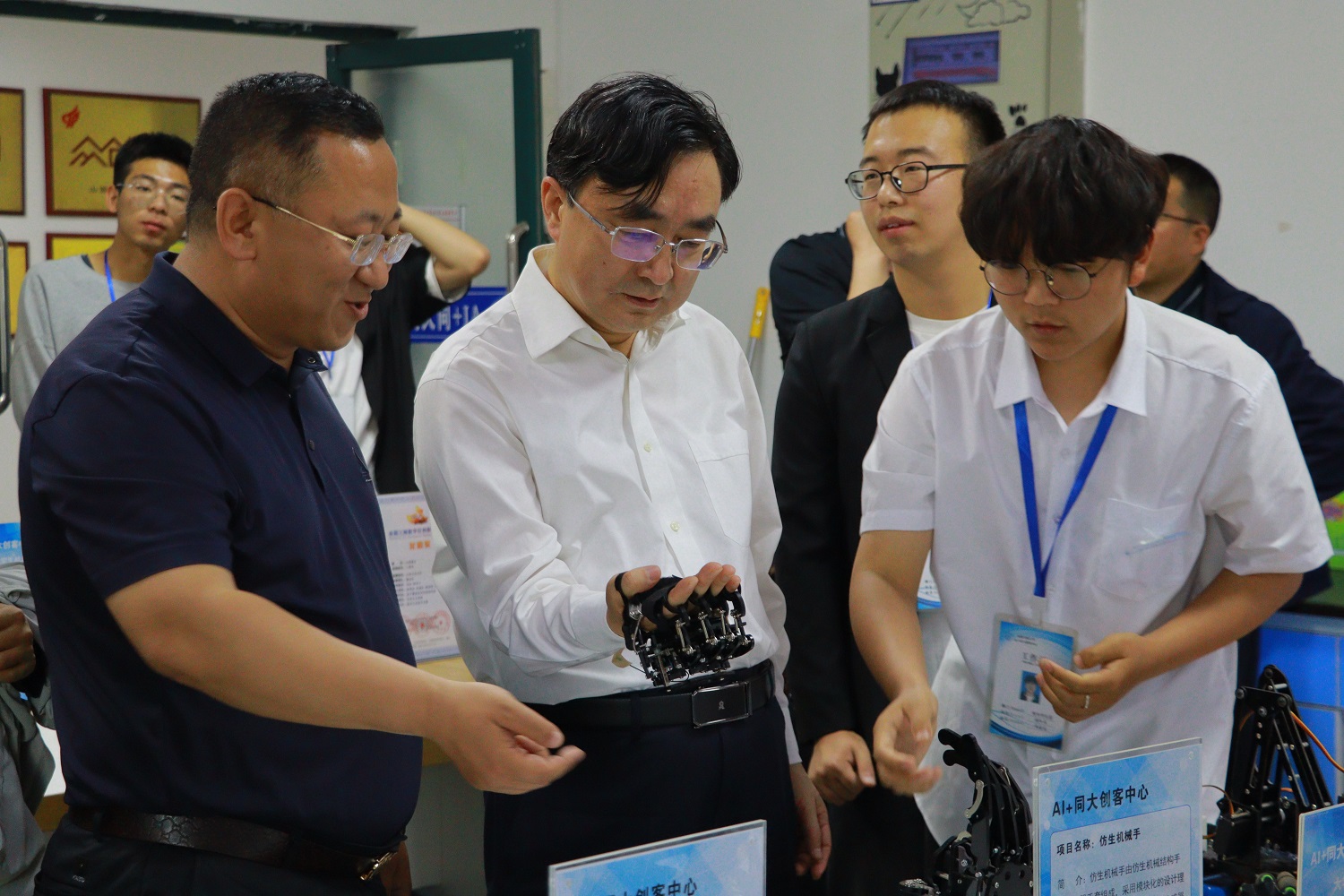 趙水民一行先后對創(chuàng)客中心的創(chuàng)意類機器人、黃花菜采摘機器人、光伏電池板清洗機器人、智能消殺機器人、智能礦山巡檢機器人、三維數(shù)字化技術(shù)創(chuàng)作、3D打印、多指協(xié)同機械手、自平衡小車等項目進行了詳細(xì)考察,對創(chuàng)客中心團隊取得的一系列成績予以高度肯定。