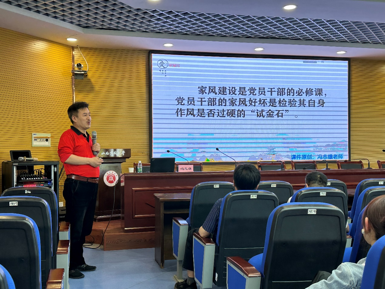 馮教授從五個方面內容:(一)習近平總書記關于家風建設的重要講話;(二)什么樣的家風是好家風;(三)入選中國第五屆非物質文化遺產的錢氏家族的家風、家訓、家教;(四)錢氏家族培養了多少國家棟梁之材,講述錢氏家訓從個人篇、家庭篇、社會篇、國家篇四個角度把家庭成員培養成優秀人才,并通過對錢偉長、錢三強和錢學森三位科學家的生平事跡為大家講述錢氏家族的家風、家訓、家教是如何影響家庭成員,總結錢氏家風讓家庭和諧,家人積極進取、愛崗敬業、熱愛祖國的三大核心競爭力;(五)我們的家庭應該向錢氏家族學習哪些家風建設的經驗和優點,我們如何建設自己家庭的家風,成就我們和家人的美好人生等內容,旁征博引、生動詳實地給教職工們上了一堂精彩的家風家訓課。