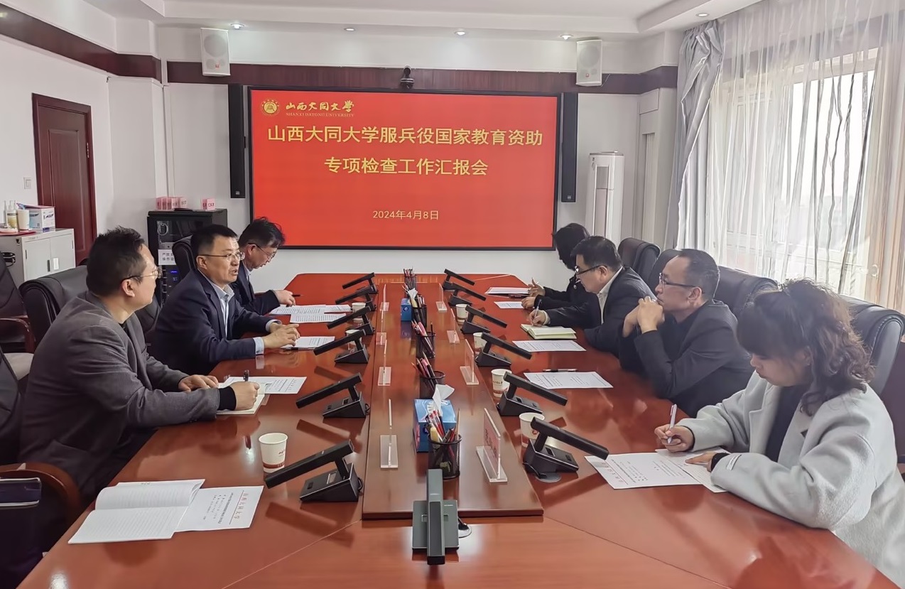 4月8日,由運(yùn)城學(xué)院黨委副書(shū)記張巍任組長(zhǎng)的山西省高等學(xué)校學(xué)生服兵役國(guó)家教育資助工作檢查第一組來(lái)校進(jìn)行核查工作。校黨委副書(shū)記寇福明主持工作匯報(bào)會(huì),學(xué)生工作部部長(zhǎng)楊容部長(zhǎng)匯報(bào)有關(guān)情況。
