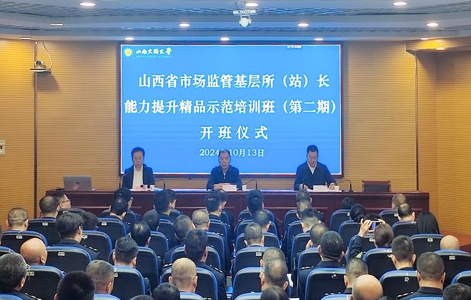 10月13日,由山西省市場監督管理局主辦,我校繼續教育學院承辦的“全省市場監管基層所(站)長能力提升精品示范培訓班”(第二期)舉行開班儀式。校黨委常委、副校長史水鴻,省市場監督管理局黨組成員、副局長郝建玉出席。省市場監督管理局人事教育處處長許鋒主持開班儀式。來自全省各地市市場監督管理局70名優秀在職基層所(站)長參加本次培訓。