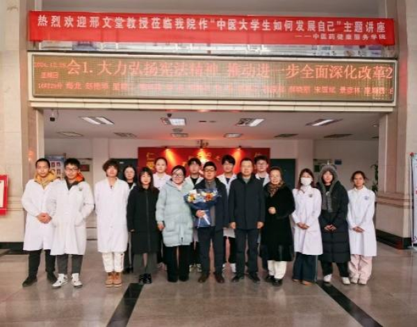 ? 12月29日,中醫藥健康服務學院在仁和樓五樓報告廳舉辦第五期名醫名師中醫文化大講堂。此次講座特邀名醫邢文堂教授,以“中醫大學生如何發展自己”為題,為學院師生帶來了一場學術講座。學院團學干部、教師代表及24級學生參加。學院黨政負責人白振軍主持。