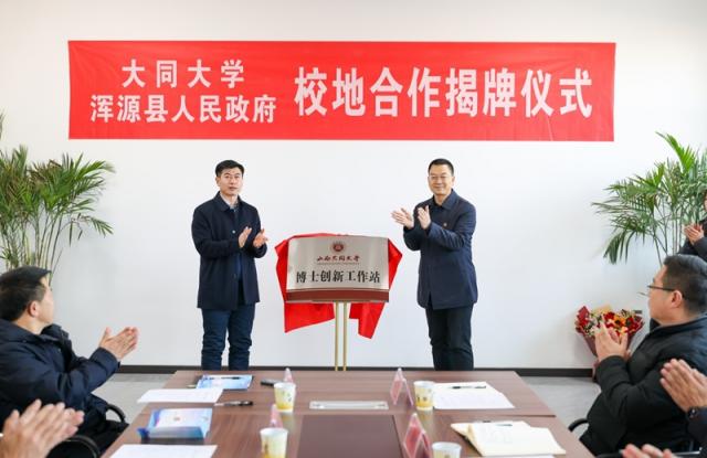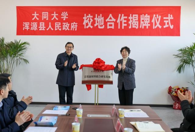 姚麗英、高瑩為“山西大同大學巖基新材料聯合研究基地”揭牌。史水鴻、謝日升為“山西大同大學博士創新工作站”揭牌。揭牌儀式后,渾天成新材料有限公司負責人為博士科研團隊陸鵬博士擬任“科技副總”(掛職)頒發聘書。