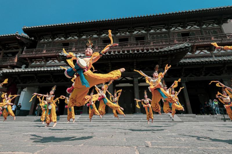 我校師生編排的《云岡束腰鼓舞》在云岡石窟展演