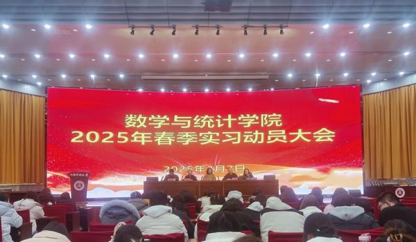 ? 為全面貫徹黨的教育方針,落實立德樹人根本任務,切實推進學生實習工作,數學與統計學院于3月7日召開2025年春季實習動員大會。學院黨委書記李紅梅、院長劉有軍等院系領導出席會議并講話,學院輔導員及2021級統計系專業全體學生、2022級數學與應用數學系全體學生參加會議。副院長賈艷萍主持會議。