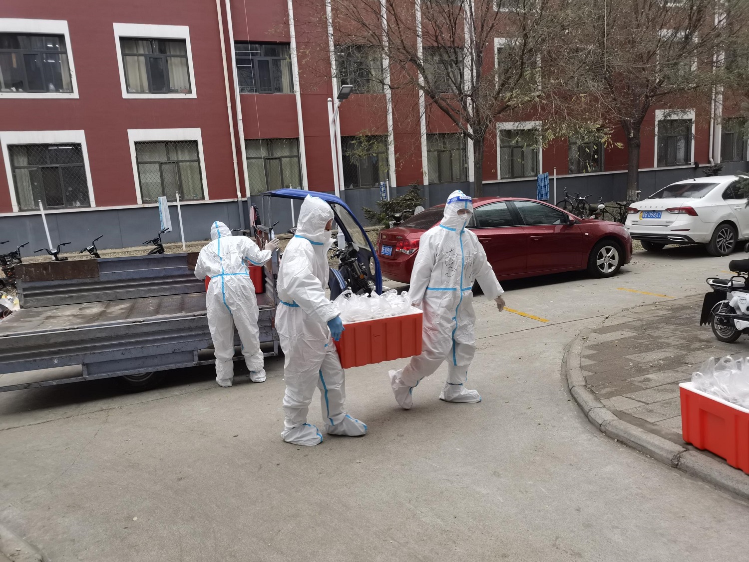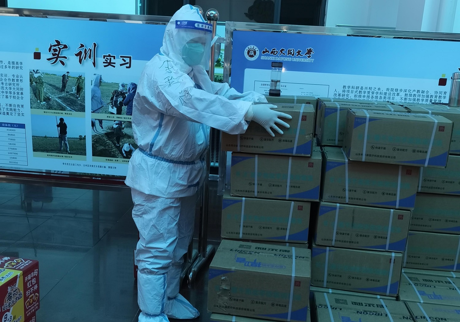 10月11日,在接到學校通知后,后勤管理部部長魏彪和云岡學學院執行院長李珍梅夫婦連夜進校,迅速投入到抗疫工作中。后勤保障是學校穩定發展的“壓艙石”,特別是學校發生疫情后,三萬人的吃穿住用就是頭等大事,壓力巨大,責任巨大。飲食供應、公寓管理、日常維修、垃圾清運,魏彪奔忙于多條戰線上,不分晝夜、全天候運轉,最忙的時候,連合一下眼、吃一口飯、喝一杯水都是奢望,但不論多忙多累多危險,他都毫無怨言,因為他深知背后是同大幾萬師生的生命健康,容不得半點馬虎和絲毫懈怠。