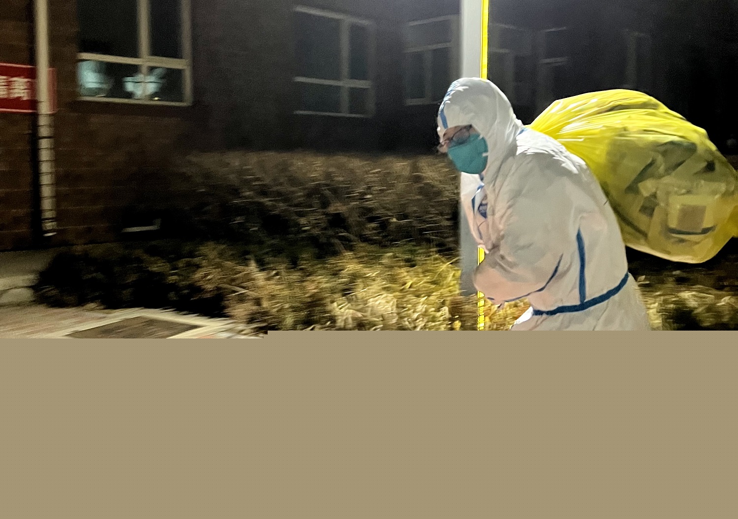 10月底,我校出現第一例陽性病例后,新聞與傳媒學院團委副書記楊玲臨危受命,逆行進入如月苑1號樓,獨自承擔起風險區的各項防疫工作。從一層到五層,再從五層到一層,不停地上下樓奔波,100多間宿舍,一個一個地敲門,為學生們分發溫度計、N95口罩等防疫物資,不厭其煩地叮囑同學們要及時測量體溫,不要在公共區域活動,如果上衛生間務必要戴好口罩……;從宿舍樓前到樓內,再從樓內到宿舍樓前,她不停地來回穿梭,為600多名學生搬運著一箱箱方便面、面包、牛奶、餐品……密不透風的防護服下,汗水早已浸透了衣衫。
