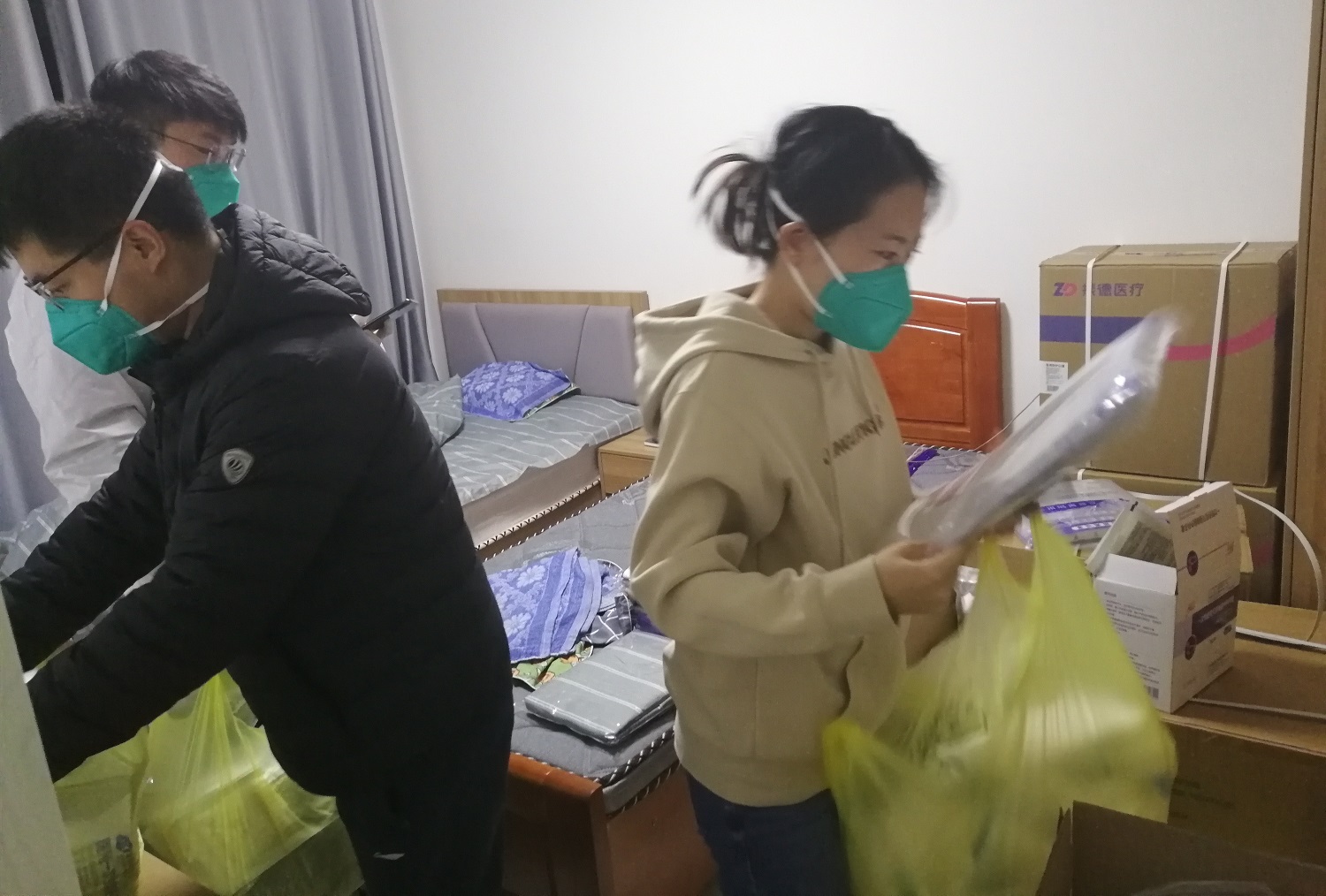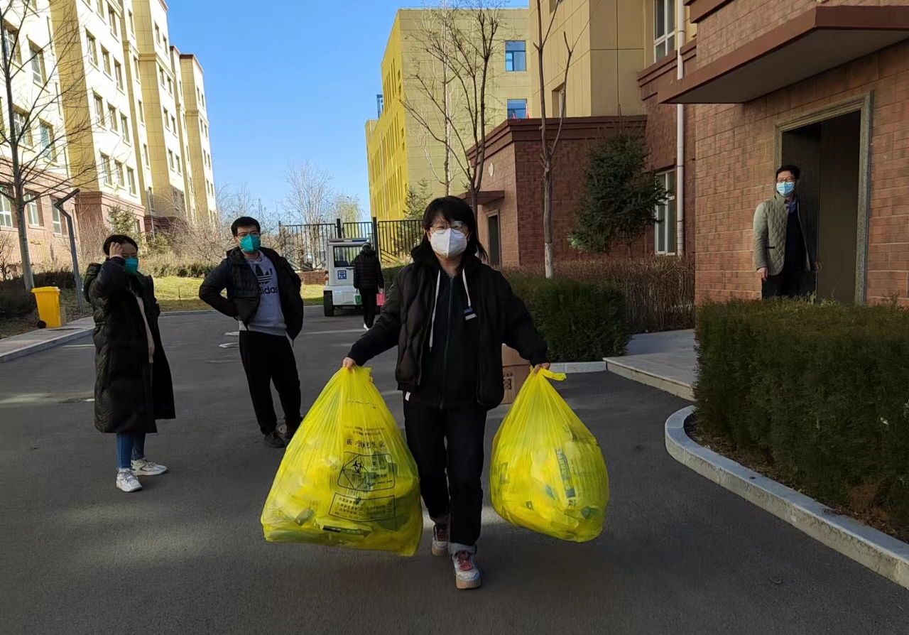 11月2日,文學院教師李曉璐、楊馥菱,云岡學學院賈茜作為第二梯隊再一次逆行而至。3日至4日,我校如月苑3號樓幾百名密接者迅速轉運至匯智苑。事發突然,從未經過如此“大陣仗”的3位柔弱女子,承擔起超乎想象的防控重任。此時正是大同市平城區管理團隊剛剛組建,來自不同單位素未謀面人員因疫情防控走到一起的“磨合期”,管控面大、缺乏經驗、物資短缺等始料不及的問題帶來多種挑戰。3位年輕的志愿者沒有抱怨,沒有推諉,沒有退縮,而是挺身向前,迎難而上:在這里,她們充當“線上聯絡員”,上傳下達學校的各項防疫政策和指示精神,溝通協調隔離點的各項具體事宜;在這里,她們又是“心理疏導員”,用一個個電話、一條條信息不厭其煩地為學生做心理疏導,“孩子,你的藥馬上就到,我們就在你身邊”“孩子別怕,老師們在這里守護著你們”“孩子,沒事的,老師們會盡全力保護好你們”……;在這里,她們是“搬運工”,在消殺物品、生活用品、醫藥物質的分揀、裝卸與發放中,總是能看到她們的身影;在這里,她們還是“組織員”,負責著學生轉運、信息統計等眾多繁重的工作;在這里,她們同時是“宣傳員”,在抗疫工作之余還不斷將同大齊心抗疫的故事和精神傳遞給隔離區的師生,為大家加油鼓勁。