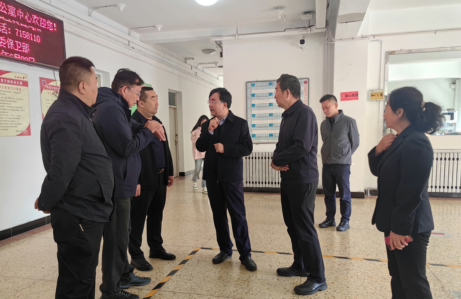 趙水民來到新正苑學生公寓,查看“輔導員駐樓值班室”“輔導員談心談話室”“心理咨詢室”“學習空間”等,圍繞“一站式”學生社區建設、黨團組織工作進公寓、輔導員進駐公寓、心理咨詢和思政課教師隊伍進公寓等方面進行指導。他強調,“一站式”學生社區綜合管理模式建設工作是深入學習貫徹習近平總書記關于教育的重要論述,適應新形勢新情況、加強高校黨的建設和思想政治工作的重要體制創新,是學校開展“三全育人”的重要場域和渠道。要進一步提高政治站位,加快推進“一站式”學生社區建設,力爭將學生社區建設成為學生黨建前沿陣地、“三全育人”實踐園地、智慧服務創新基地、平安校園樣板高地。要繼續加強完善已建成空間的建設,穩步推進相關隊伍的后續進駐工作,加快清和苑、如月苑、新平旺校區等學生社區的建設進度。要全方位、多層次提升服務學生能力水平,將硬件建設與黨團、師資隊伍建設相結合,進一步整合資源,匯聚合力,打造具有同大特色的“一站式”學生社區綜合管理平臺。