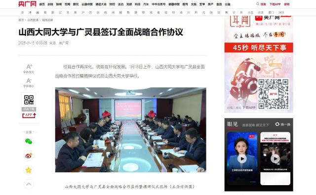 校縣合作再深化,優勢互補促發展。1月13日上午,山西大同大學與廣靈縣全面戰略合作簽約暨揭牌儀式在山西大同大學舉行。