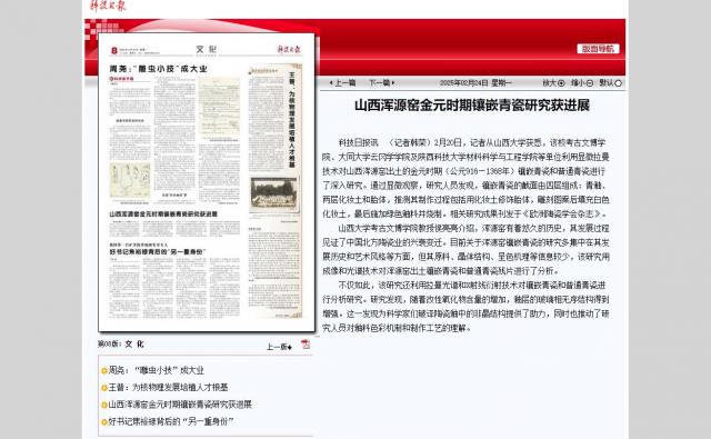 山西大學考古文博學院教授侯亮亮介紹,渾源窯有著悠久的歷史,其發展過程見證了中國北方陶瓷業的興衰變遷。目前關于渾源窯鑲嵌青瓷的研究多集中在其發展歷史和藝術風格等方面,但其原料、晶體結構、呈色機理等信息較少,該研究用成像和光譜技術對渾源窯出土鑲嵌青瓷和普通青瓷殘片進行了分析。